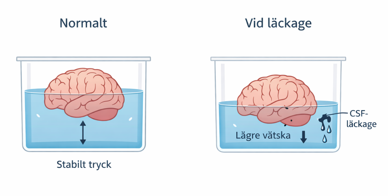 CSF-läckage innebär att cerebrospinalvätska (vätskan runt hjärnan och ryggmärgen) läcker ut från sitt normala system.